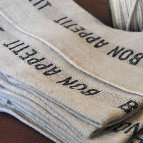 100% linen tea towels designed by Charvet Editions.?accented with jacquard woven lettering in colours to suit every kitchen.